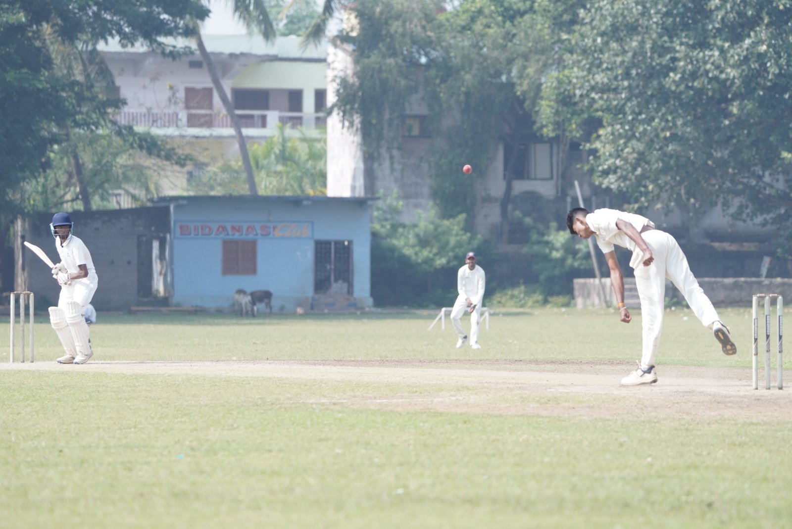 At the Bidanasi Ground, Cuttack-A, opting to bat first, were bundled out for 125 runs in 51.4 overs. Abhisek Kalia (33) and Satyansh Sharma (27) offered brief resistance, but Slok S. Nayak was outstanding for Bhubaneswar-A, returning figures of 6 for 14, while Mrutyunjay Tripathy claimed 2 for 24. In reply, Bhubaneswar-A reached 154/3 at stumps, led by unbeaten half-centuries from Mrutyunjay Tripathy (63) and Leoneel Meher (61), giving them a 29-run lead**.