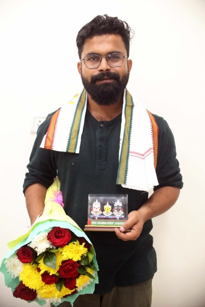 Bhubaneswar: Dipanwit Dashmohapatra, a former SOA student who played a supporting role in the Odia movie ‘DAMaN’, was felicitated by SOA Vice-Chancellor Prof. Ashok Kumar Mahapatra at the university on Tuesday.
